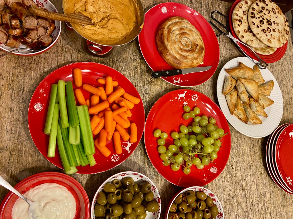 Four days later, it was Christmas. For dinner, I made what I called the Jesus Feast, which is a Mediterranean buffet made almost exclusively of vegetarian food: