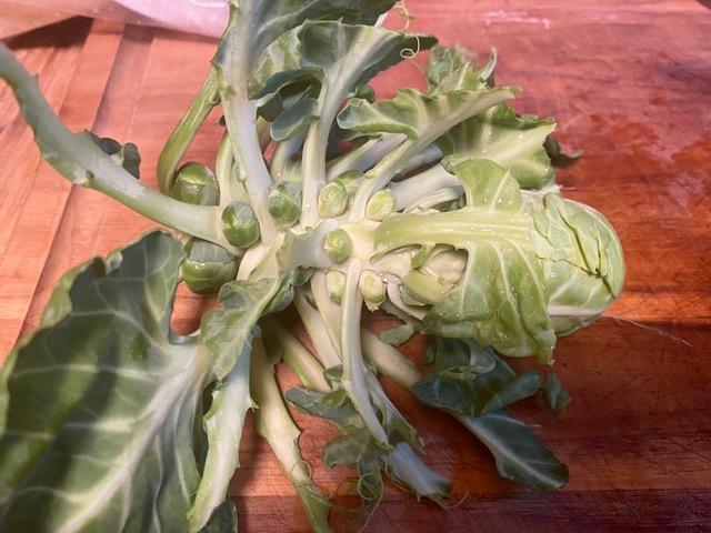 Tiny little baby brussel sprouts, about the size of a pea. I pulled them off and threw them in with the leaves. The whole thing ended up tasting quite good.
