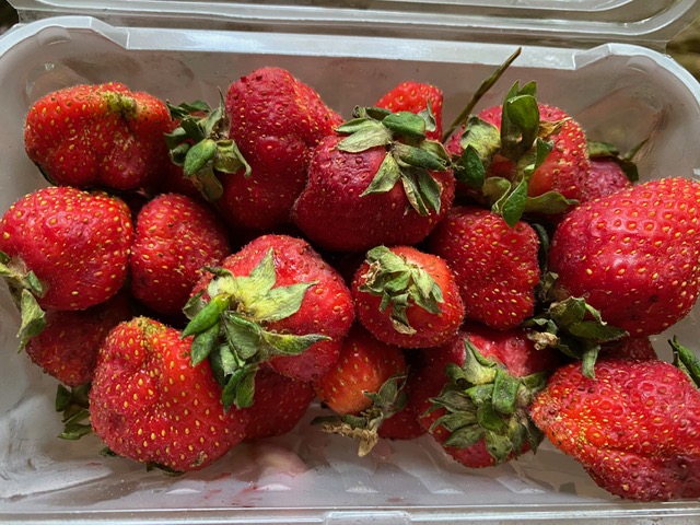 Strawberries in their natural state are a delicate berry. So once the local growing season is over, grocery stores have to have them shipped in, usually from farther and farther away the longer it is after the growing season. In order for them to survive, farms pick them when they are unripe so that most of them will survive the journey. But strawberries that “ripen” after they have been picked don’t taste or feel like real strawberries. Plus, the carbon footprint of flying the berries in from California, or from South America during winter/Valentines Day (for example), is huge.