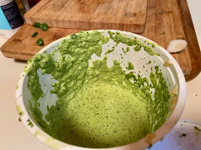 We could still bring in food and drink, so our main dish was Peruvian Chicken Salad Wraps that I made. Thursday night, I had roasted a chicken with Peruvian spices that I served with baked Yuca and a spicy Peruvian green sauce comprised mostly of jalapeños and cilantro that we love, although I’m not a huge cilantro fan;