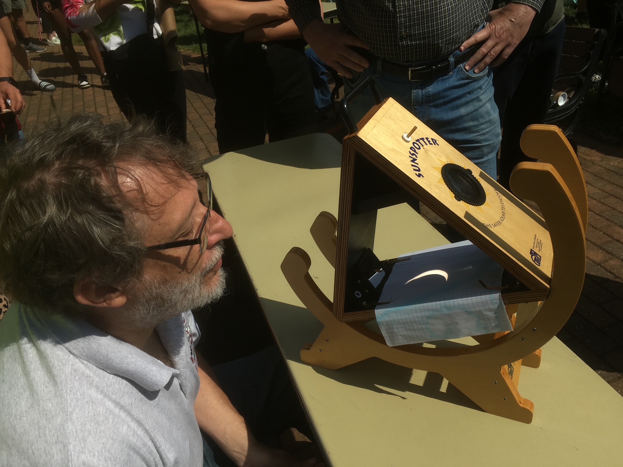 I tried taking pictures of the sun directly, but that didn’t work. However, this colander technique was cool to see in real life. Since I had solar glasses, mostly I watched with those.