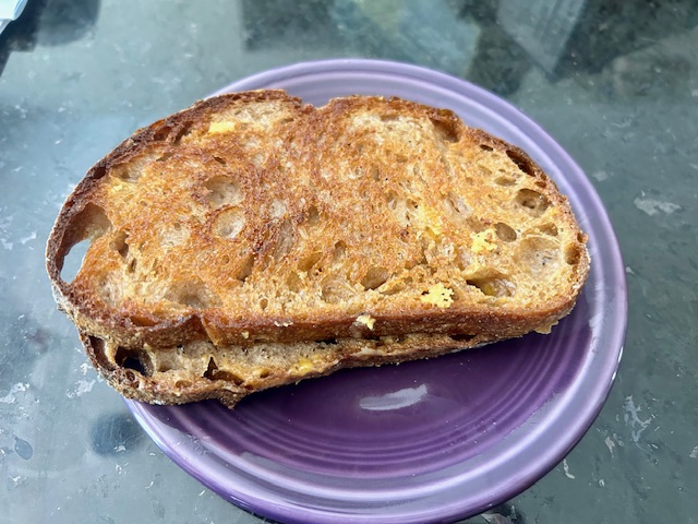 To be honest, I had planned to make something else. But my son in college surprised me by coming home, and we were out and about taking care of things he needed, and I ran out of time. One of the glories of grilled cheese is that you can make it in a few minutes using ingredients most of us have around, and that really worked for us that day. And it was a great sandwich, so I have no regrets! I kind of think it may be harder for me to give up cheese than to give up meat…we will see.