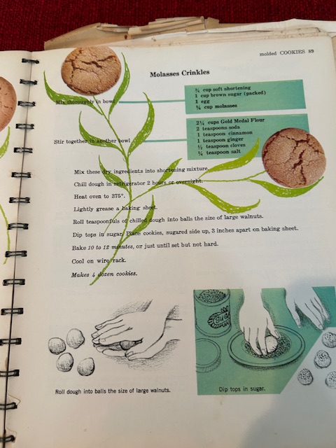 While my mother was a good cook, she didn’t have much of a sweet tooth, and so she didn’t do a lot of baking. But the one cookie I remember her making was Molasses Crinkles, which look pretty similar to Gwen Walz’s ginger snaps. So I thought that tonight I would make our family’s traditional molasses cookies in honor of my late parents.