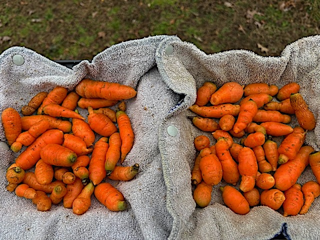 After I sent off my blog post yesterday, I went to one of my most BlissFull communities: the Cary Downtown Farmers Market. My local farmers market is my version of Cheers–a place where everybody knows my name and they’re always glad I came. That is particularly true over these winter months where there is not a lot growing, but we still try to support our farmers by buying their soap or hot sauce or frozen meat or these ADORABLE little TRUE baby carrots (not the ones in the store that are just big carrots cut into pieces):