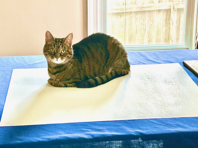 My cat, Mica, can go anywhere she wants in our two-story home. But, OF COURSE, this afternoon she chose to plant herself on the poster board I plan to use for my first mass protest rally in…well, let’s not try to do the math. I am assuming she is adding her mellow cat energy to our protest, which is committed to non-violence. So, thanks, Mica.
