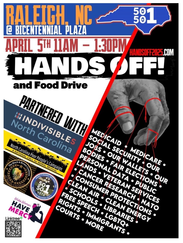 That protest is the Hands Off rally organized by 50501, which stands for 50 (at least) NON-VIOLENT rallies in all 50 states for 1 purpose–to protect our country, our people, and our world from policies that we feel are not in alignment with our values, or even our laws. For more information, you can see my first Shock and Activate post about this at: https://blissfullu.com/2025/03/19/save-the-date-april-5-is-a-nonviolent-national-demonstration-in-support-of-the-constitution/