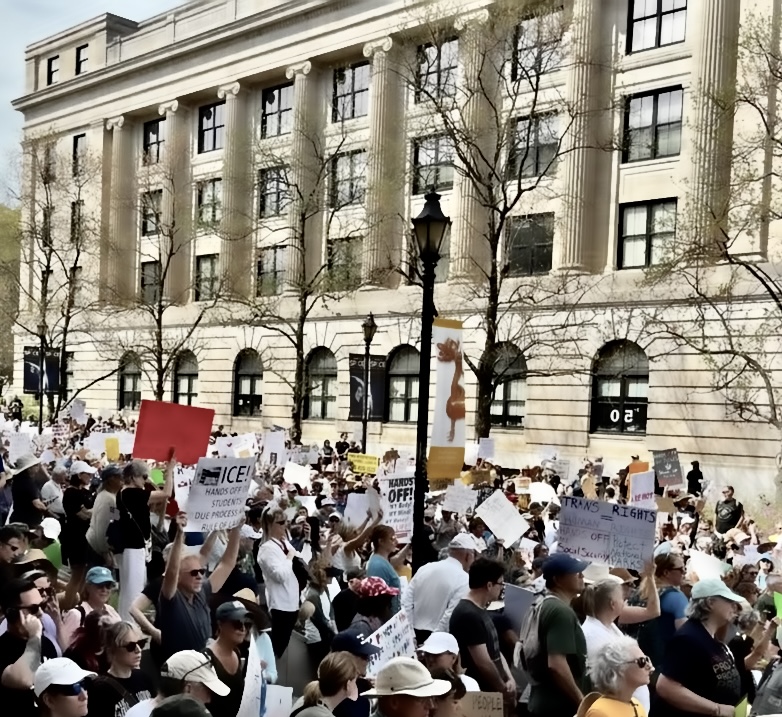I couldn’t linger for my usual community time because I had places to go, political acts to protest. As I’ve been writing about, I was making my displeasure known about the illegal practices of the Trump Administration by participating in a Hands Off rally in nearby Raleigh, NC.