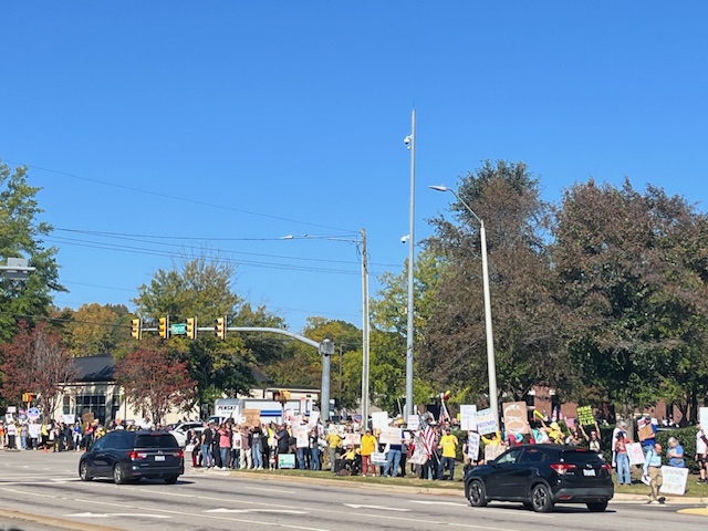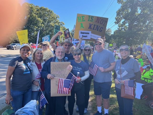 Since President Trump’s second term, I have participated in all the national protests organized by 50501 and partners, as well as at least two pop-up protests sponsored by Cary Indivisible, our local organization. But the No Kings rally on October 18 was the biggest and the best of them all. This protest was derided by Republican leaders. President Trump claimed it was attended by very few people (really? 7 million active participants? That’s 14 times as many people as attended both his inaugurations combined). House Speaker Mike Johnson tried to rename it the “Hate America” protest.