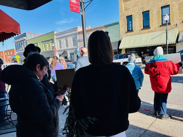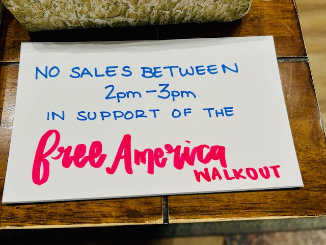The one I attended was at a store in the historic Apex Downtown Commercial center. The owners were actually out of town at the Walkout protest in Washington DC, and left their daughter to run the store and the protest. As shown above, they turned away anyone trying to buy something during that hour, and invited them to protest with us instead.