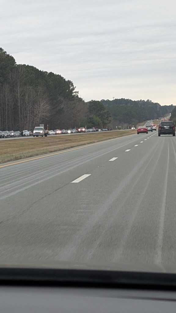 Apparently people were parked for over a mile along highway 64, which the monks took from Pittsboro to Apex.