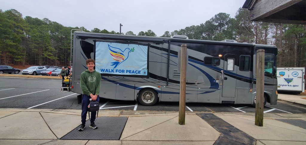 Today, North Carolina Governor Josh Stein declared it was Walk for Peace Day in our state. For today, the Venerable Monks who are undertaking a long-distance spiritual pilgrimage across a portion of the United States arrived in Raleigh, the capital of North Carolina. The pilgrims are Buddhist monks from the Huong Dao Vipassana Bhavana Center in Fort Worth, Texas. They are walking through 9 states to reach Washington, D.C., promoting peace, compassion, and nonviolence all along the way. They have been in North Carolina, the 8th state on their journey, for a week and a half. By reaching the state capitol building, they have completed about 1,800 miles of their 2,300 mile pilgrimage…all on foot.